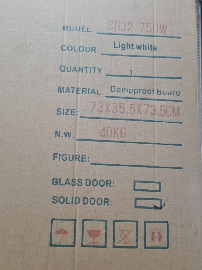 Vanity, sunny Group, SH32-750W/ UV7011A-750/ P193-750W, colours includes Black, Light whiteQuanity 4 to pallet, Sold as lot