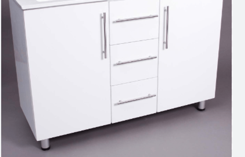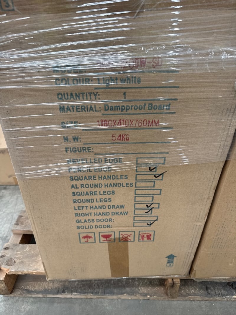 RRP $1677, Vanity, Sunny Group, SK17-1200WD-SD, Light White, 3 Draws and 2 Doors. Approx Dimensions-1180x 410 x 760 MM. Quantity-3 to pallet, Sold as lot.