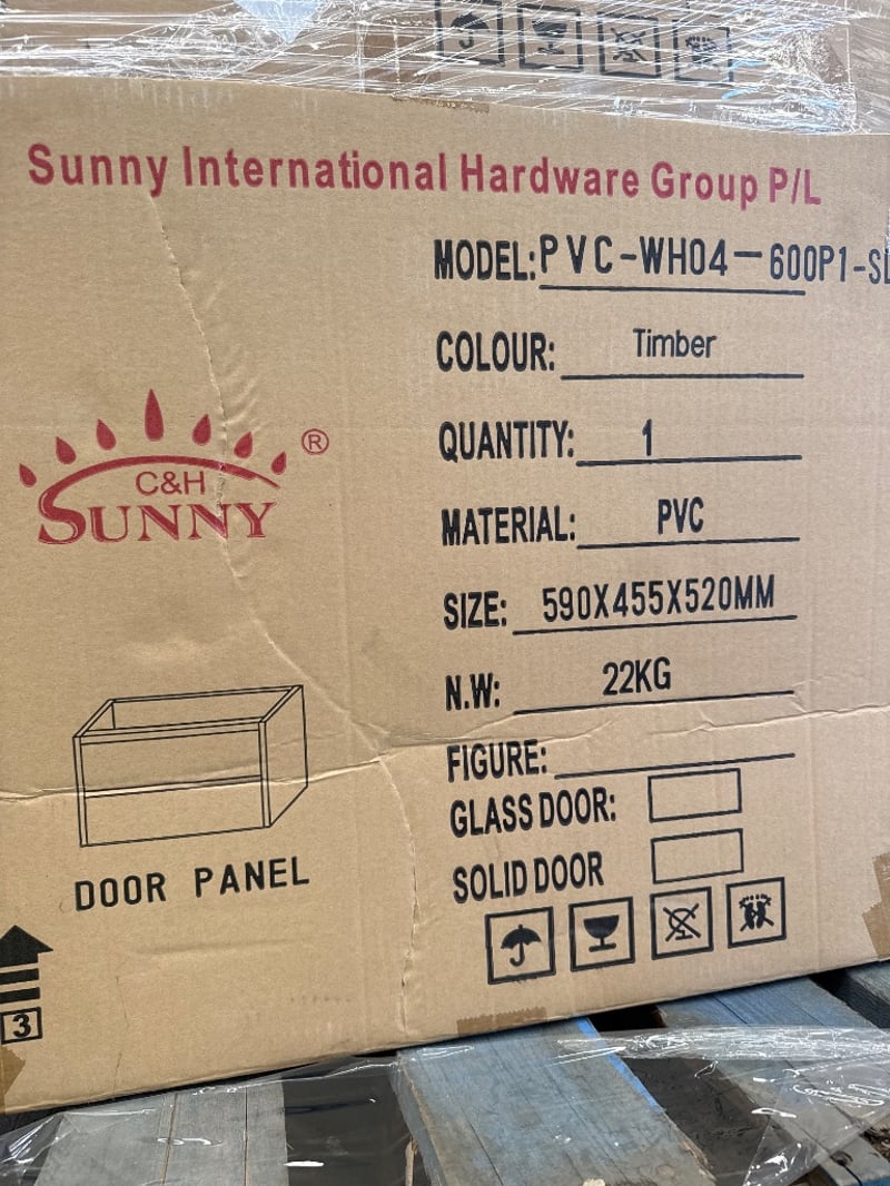 RRP $3692, Bathroom Vanity’s, Sunny Group, PVC-WH04-600P1-SD/ BH27-900W, Assorted Colour- Timber/ Black.