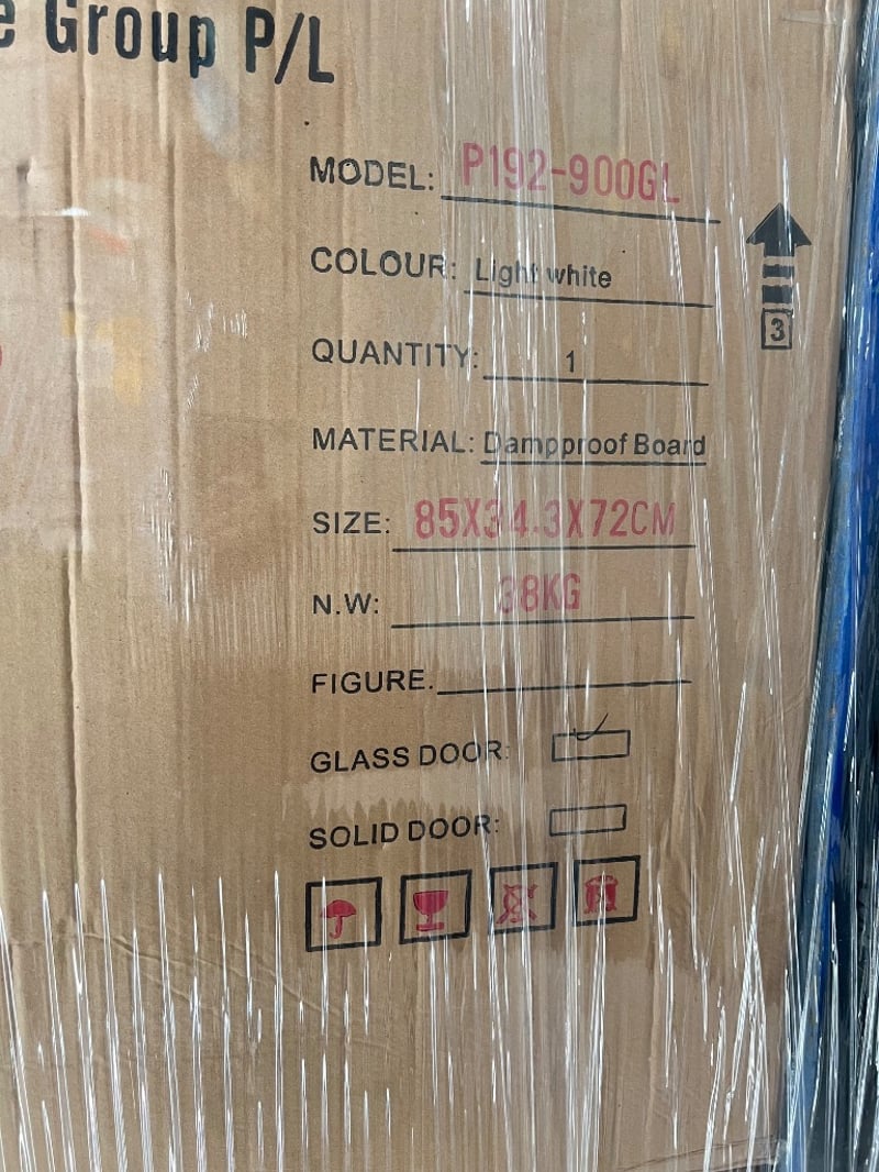 RRP $2240 Vanity, sunny group, P192-900GL, white Dimensions approx; 85 x 34.3 x 72 cmQuantity; 4 to pallet, sold as lot
