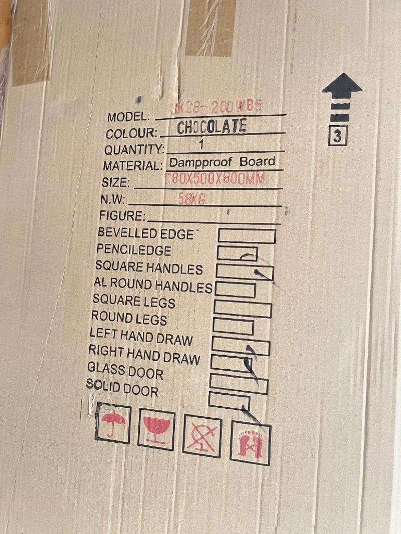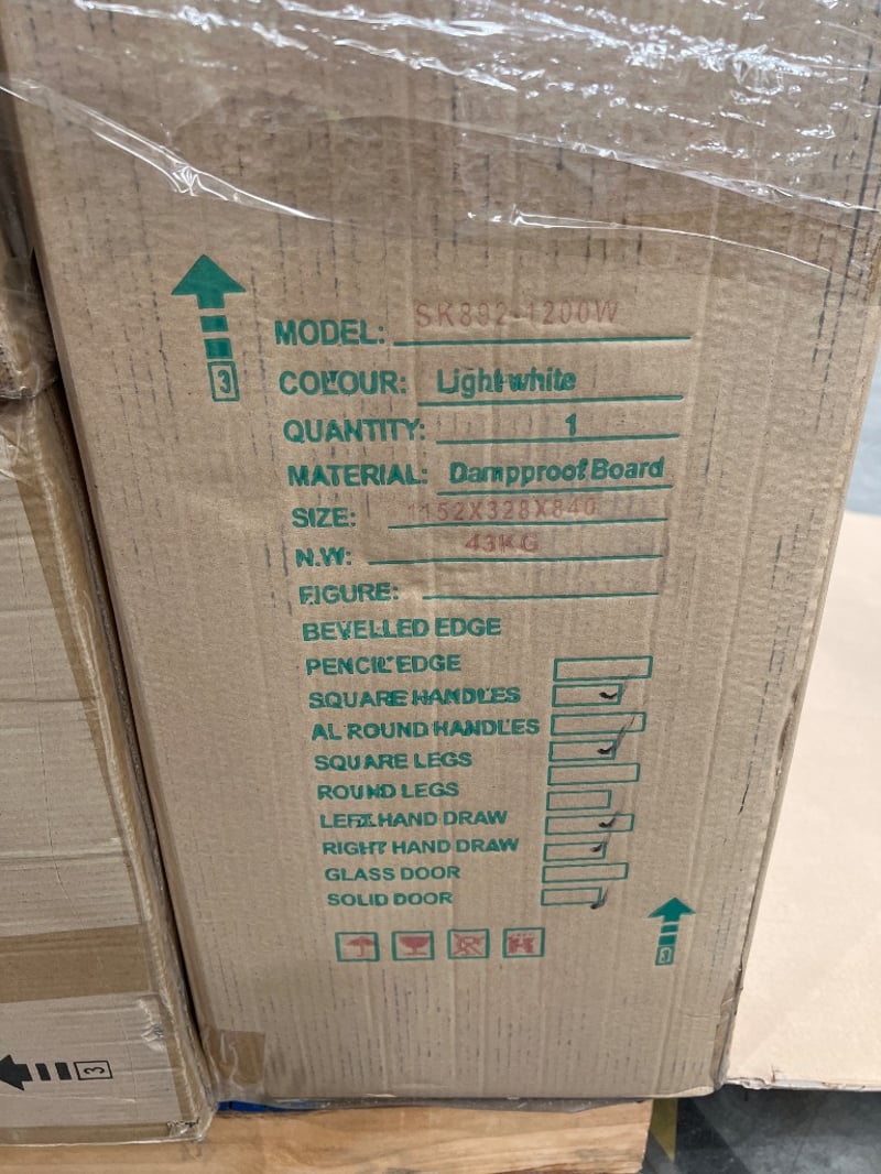 Vanity, sunny group, models include; SK892-1200W, SK28-1200WB5, chocolate/ white colour Quantity; 3 to pallet, sold as lot
