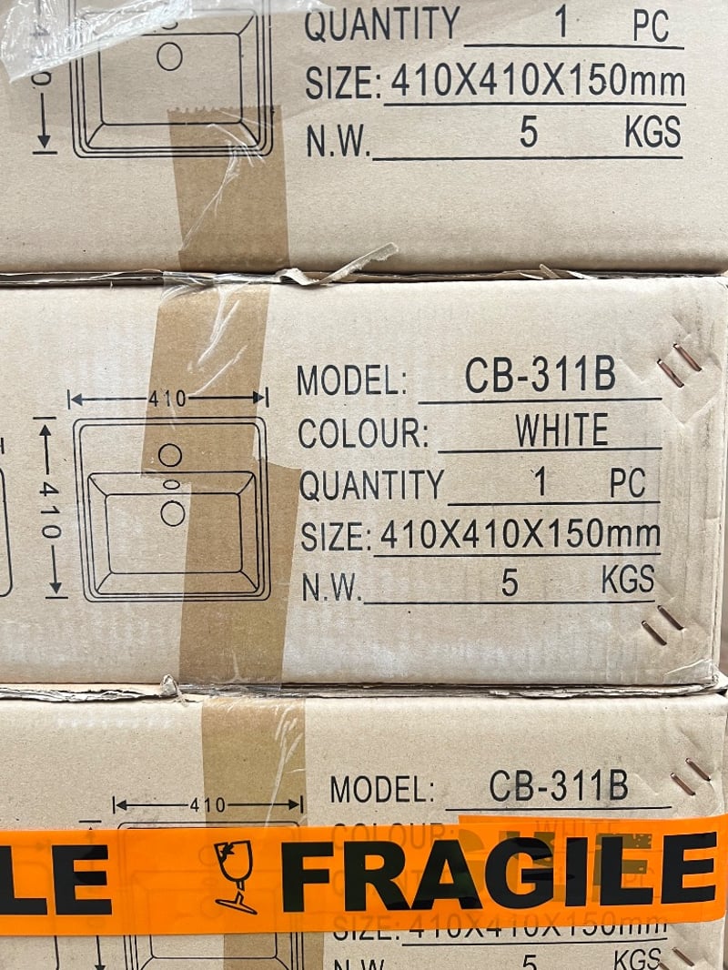 RRP $5780 Basin, SI, CB-311B, square shape, whiteDimensions approx; 41 x 41 x 15 cmQuantity; 34