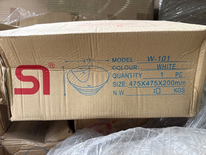 RRP $4950 Sink, SI, Model-W-101, Colour- White. Dimensions approx-475X475X200MM. Quantity-30 to pallet, Sold as lot.