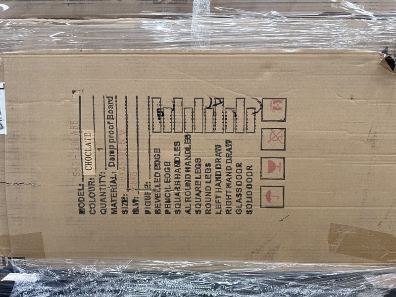 Vanity, Sunny Group, SK31-1200WB5, Chocolate. Dimensions approx- 118X45X85.5CMQuantity-2 to pallet, sold as lot.
