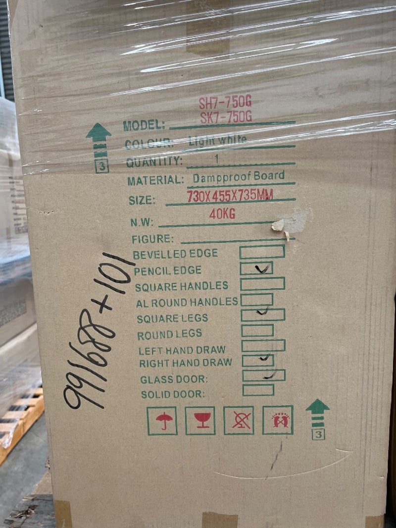 Vanity, sunny group, SH7-750G SK7-750G, whiteDimensions approx; 73 x 45.5 x 35 cmQuantity; 3 to pallet, sold as lot