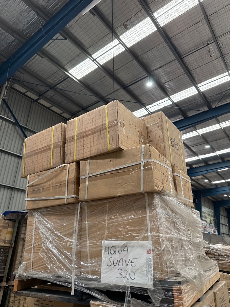 RRP $23,750, Shower Head, Simply Inspiring, Aqua Suave 230. Dimensions approx-50X26X42CM. Quantity- 10 to box (19 boxes), sold as lot.
