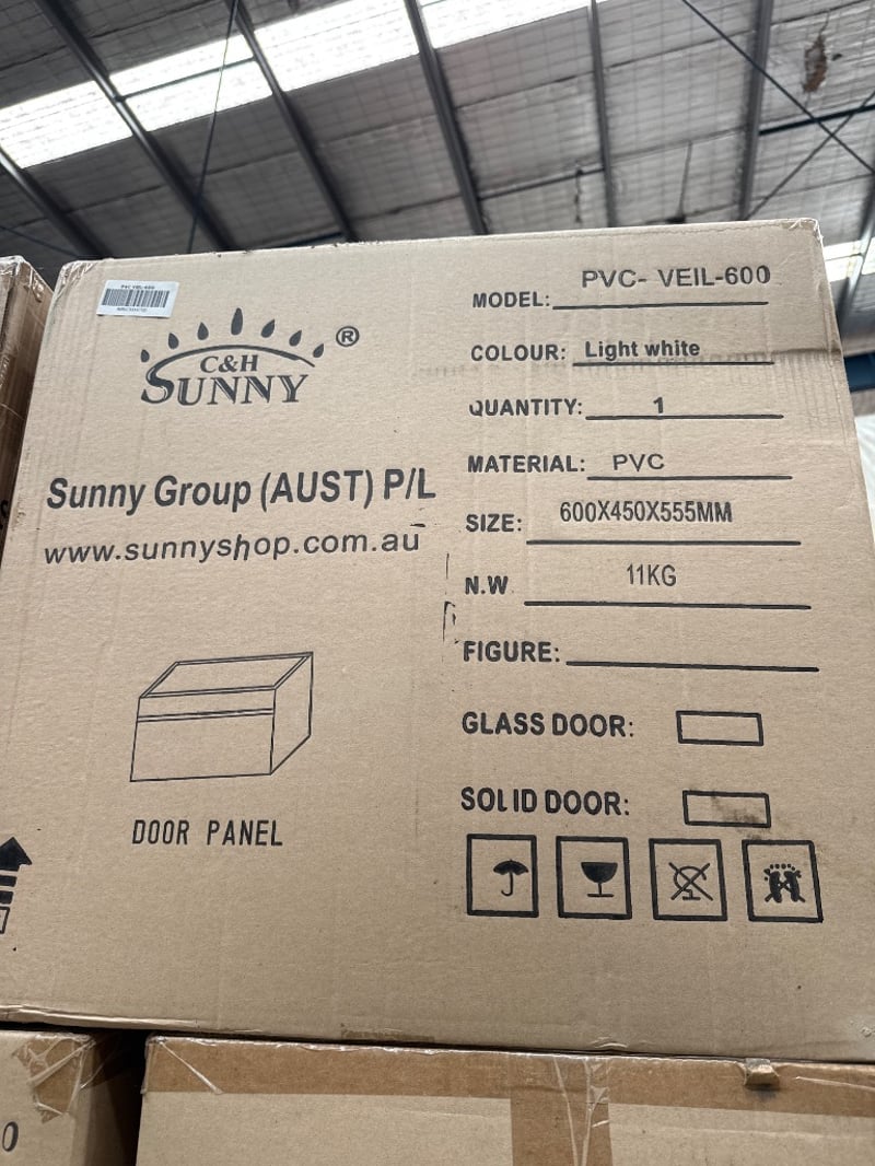 Vanity, Sunny Group, PVC-VEIL-600, Light White. Dimensions Approx- 600X450X555MMQuantity- 8 to pallet, sold as lot