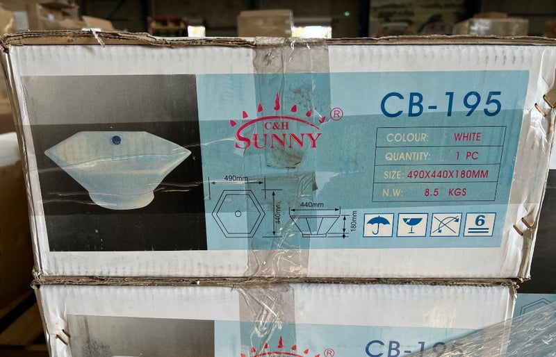 RRP $4560, Basin, sunny group, CB-195, white Dimensions approx; 49 x 44 x 18 cmQuantity; 24 to pallet, sold as lot
