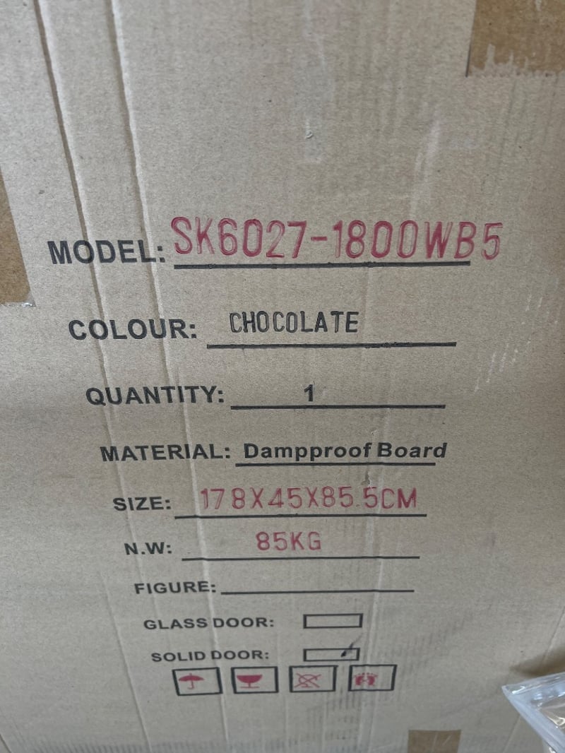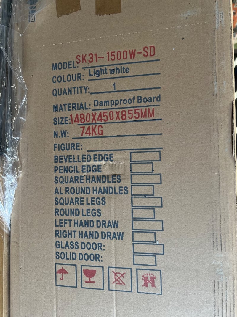 Vanity, sunny group, models include; SK6027-1800WB5, SK31-1500W-SD, SK28-1800WB5, brown/white coloursQuantity; 3 to pallet, sold as lot