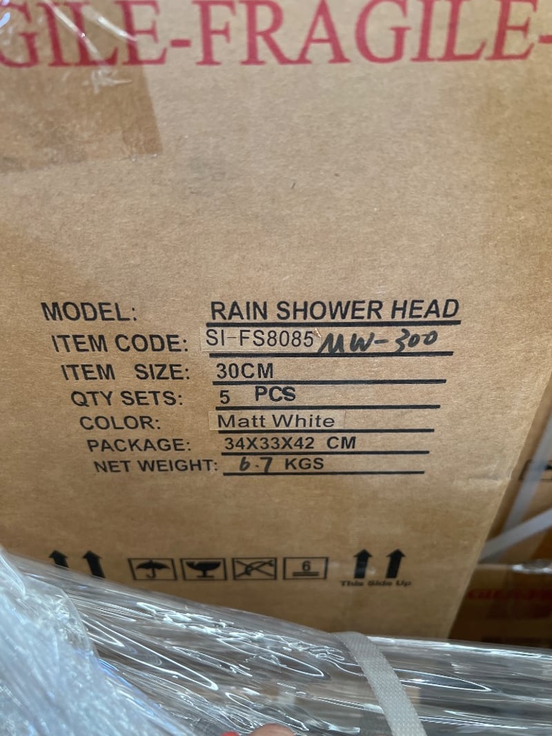 Assorted bathroom accessories, includes; Mixers, shower heads, storage etc, sunny group, SI, models include; SI-FS8085, S1006, HD509 etc Quantity to pallet