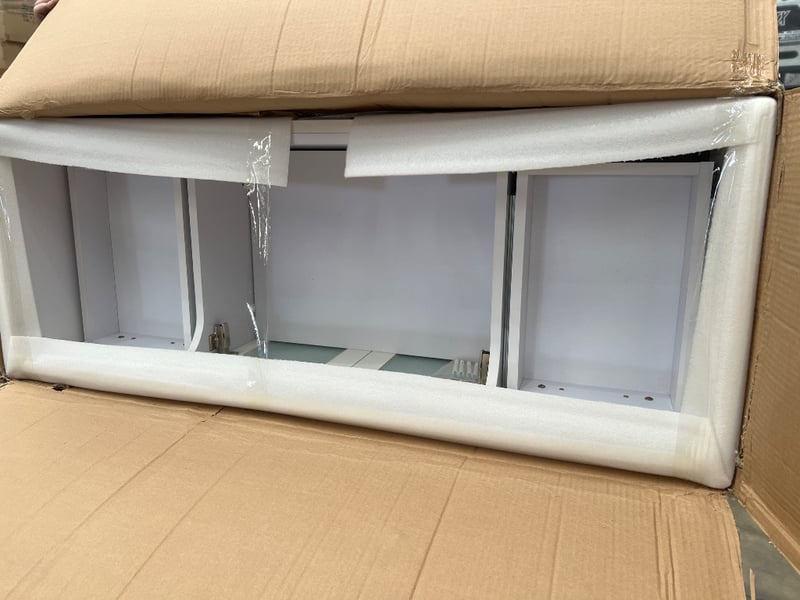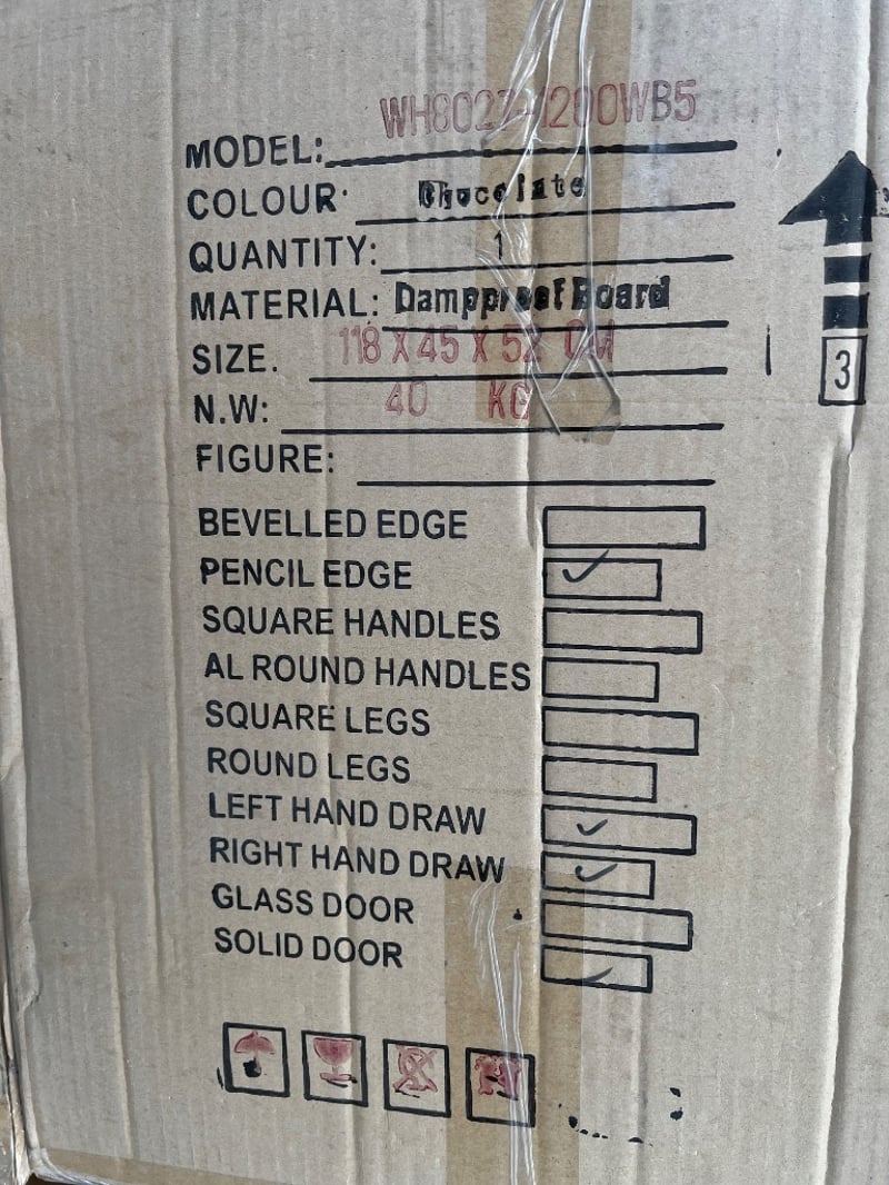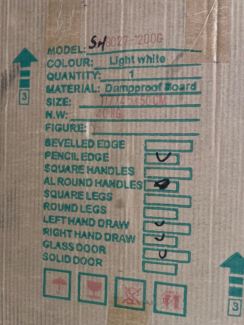 Vanity, sunny group, models include; WH8027-1200WB5, SH8027-1200G, white/ brown colours Quantity; 7 to pallet, sold as lot