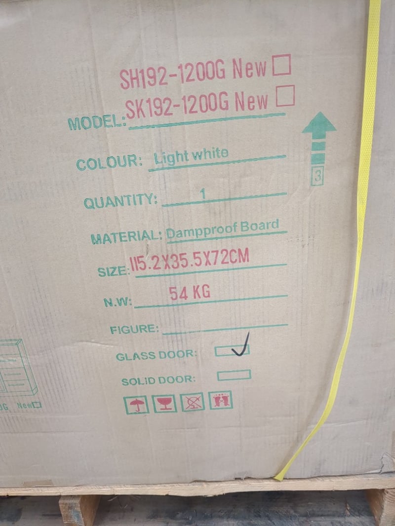 Vanity, sunny group,Assorted models include P292-1200G, SK6027-1200WB5, SH192-1200G, colours include Light white, chocolate Quantity; 4 to pallet, sold as Lot