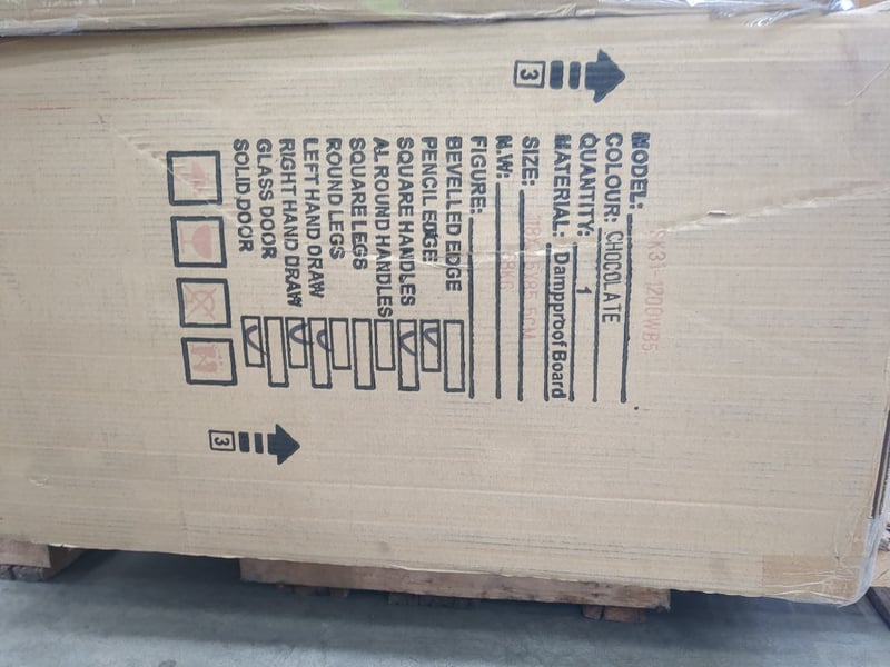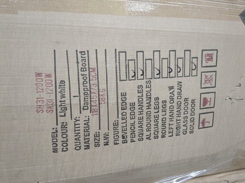 Vanity, Sunny group, assorted models include SH31-1200W, SK31-1200WB5, colours include chocolate, light whiteQuantity; 3 to pallet, sold as lot