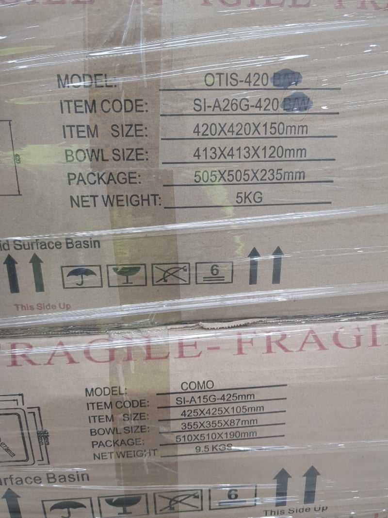 Basin, simply inspiring, models include GEMMA, BUV304, NOVA, MONARCO, CB125, COMO, OTIS-420, CB290, AMOS-500, White Quantity; 53 to pallet, sold as lot Quantity;