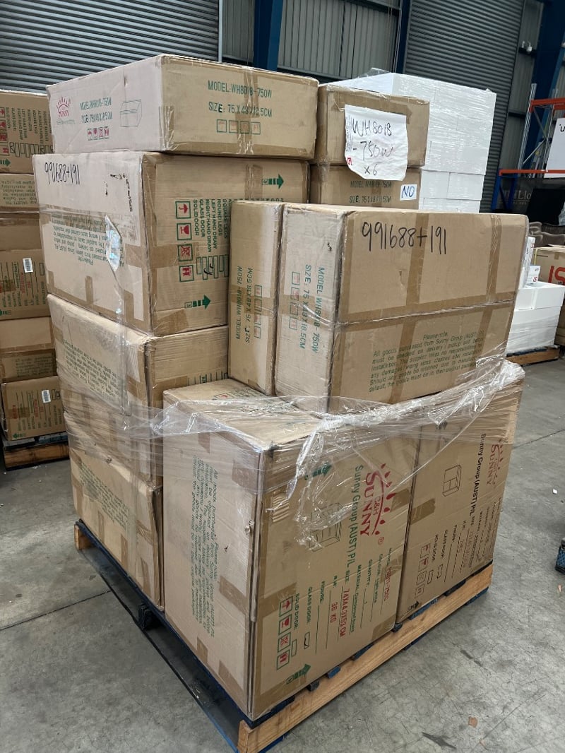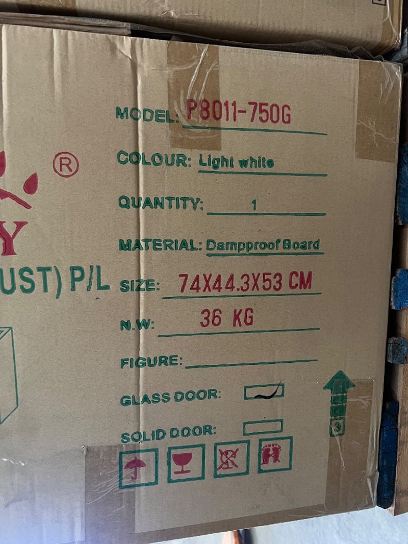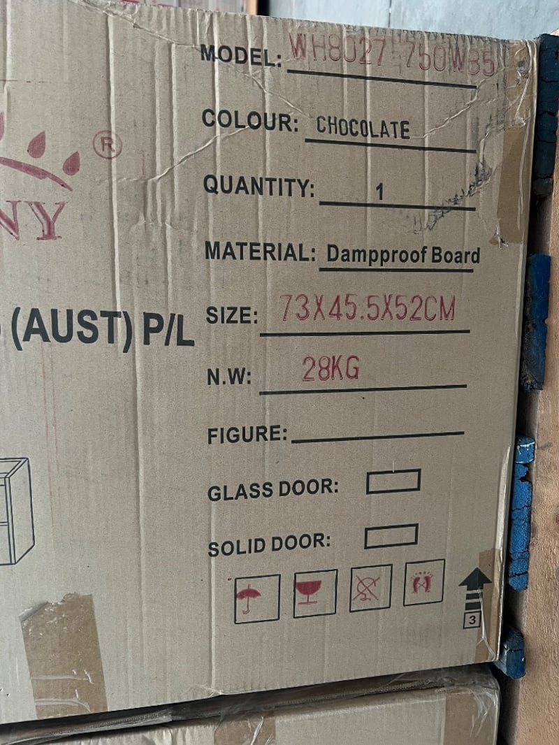 Vanity, sunny group, models include; WH8018-750W, P8011-750G, WH8027-750WB5, assorted styles/ coloursQuantity; 13 to pallet, sold as lot