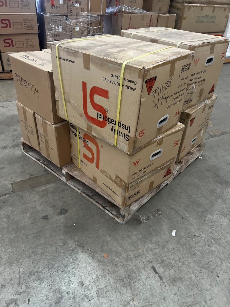 Kitchen/ bathroom mixers, glass bottles, SI, models include; SIA3161K, HD-Y01Quantity to pallet