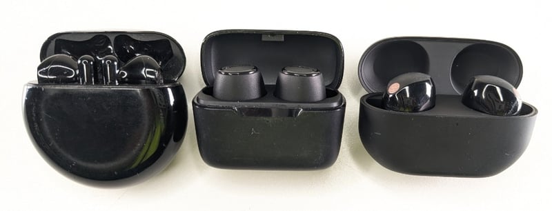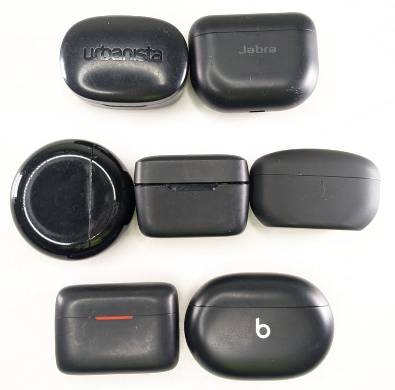 ASSORTED BRANDS WIRELESS EARBUDS, WITH CASES. QTY 7.