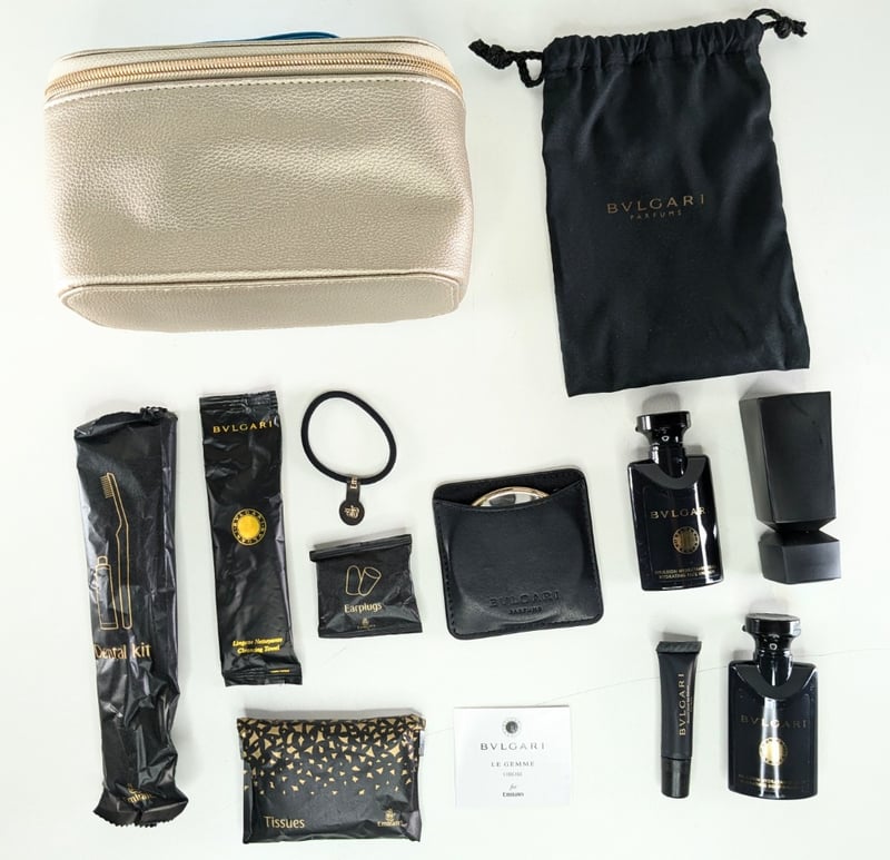 AIRLINE 1ST CLASS AMENETIES POUCHES WITH CONTENETS, QTY 10.