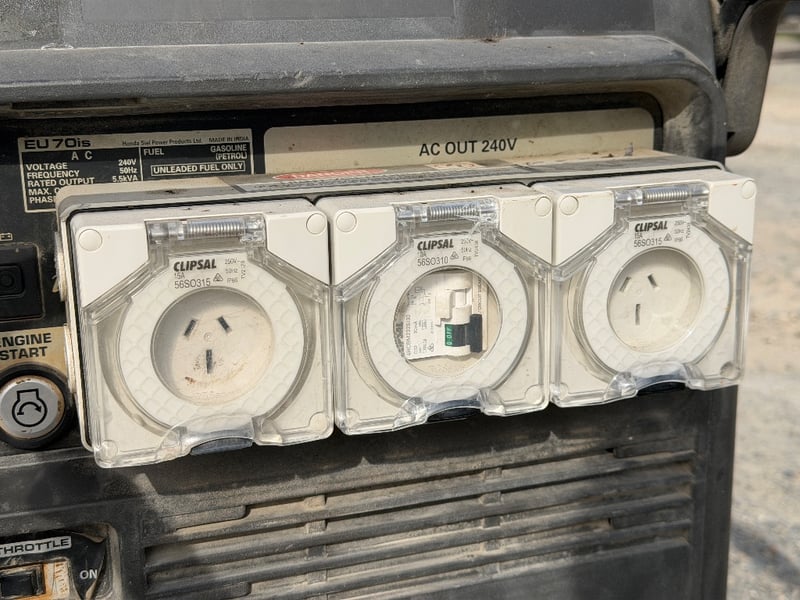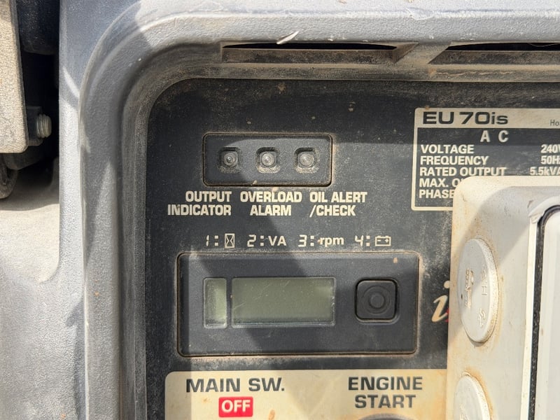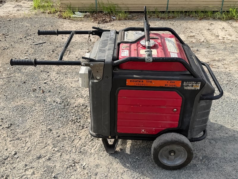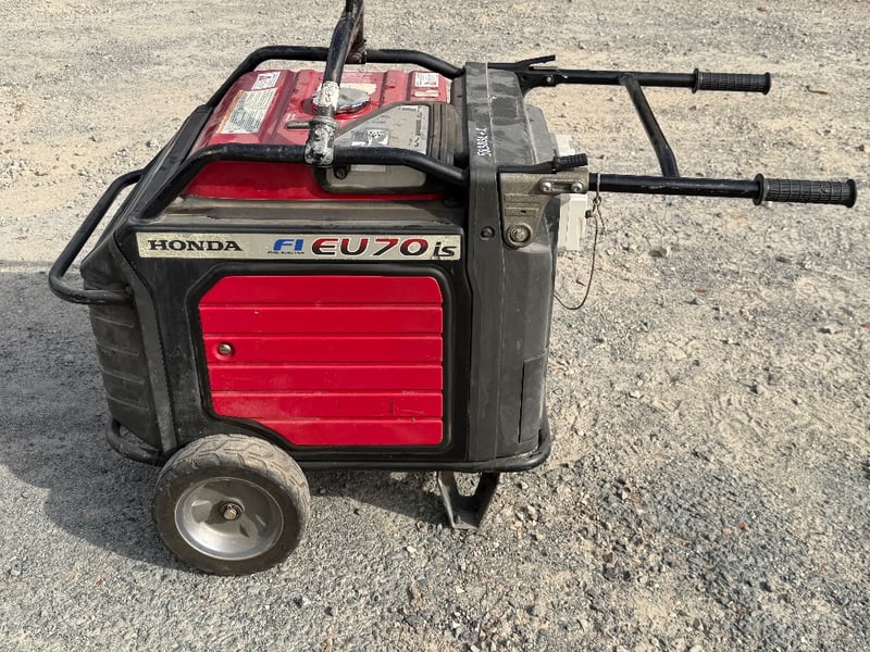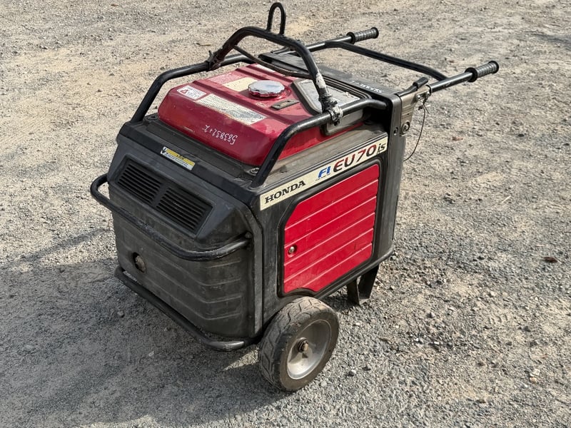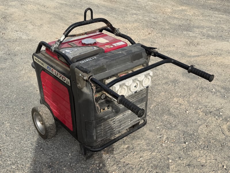 Honda EU70is Generator 6kva Specifications: Engine: Honda GX390 Fuel Tank Capacity: 19.2 litres Continuous Run Time: 7.7 hours Noise Level: 52 dB(A) @ 7m Dimensions: 84.8 x 70 x 72.1 cm Weight: 118 kg Serial No: E0376 Engine No: EEJD-1116361 Engine Hours: 2,332 hrs Features: The EU70is uses Honda’s four-stroke GX390 engine coupled with an Electronic Fuel-Injection system, delivering a maximum output of 7,000 watts AC and rated output of 5,500 watts. It is the perfect Generator for heavy duty commercial or domestic applications. 7000W maximum output Electric push button start and recoil start back up Better than commercial quality electricity Electronic fuel injection system and automatic eco-throttle Note: Battery Low, Ignition turns over but does does not start. Not starting - Electrical issue (ignition) Ref: 1196921 Contact: Mark Davin on 0437 318 344 or [email protected] (Key #NoKey) Carrara