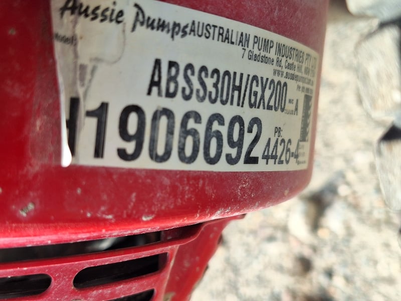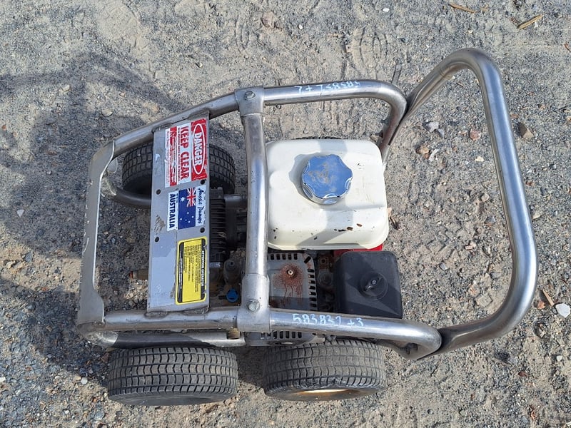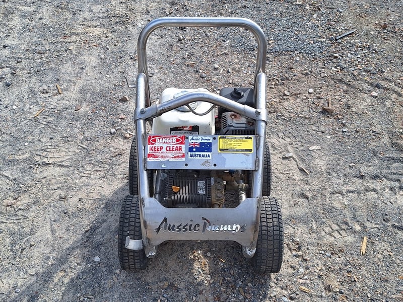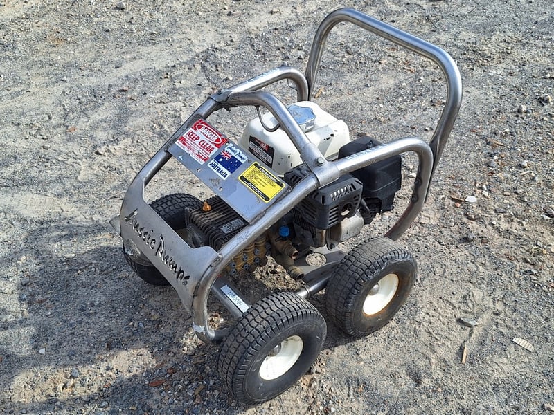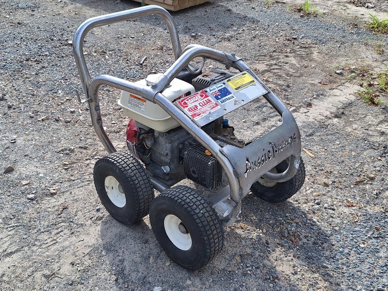 Aussie Pumps 3000PSI Cold Pressure Cleaner Make: Aussie Pumps Model: ABSS30H Rated pressure: ~3,000 PSI Flow: ~10 L/min Engine: Honda GX160 4 stroke petrol, 5.5 HP Pump: Bertolini triplex Pump speed: listed ~3,200–3,450 rpm Nozzle size: 0.35 Weight: ~45 kg Dimensions (boxed / unit): commonly ~620 × 540 × 580 mm Frame: stainless steel Ref: 1240091 Contact: Mark Davin on 0437 318 344 or [email protected] (Key #NoKey) Carrara