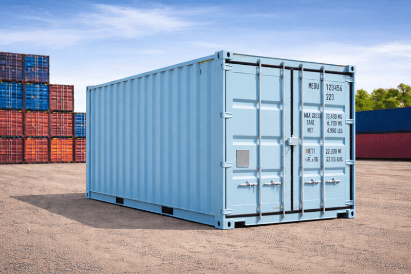 PORT DIRECT* 20DC-U Standard 20ft dry container for general cargo, measuring 6,058 × 2,438 × 2,591 mm (L×W×H).