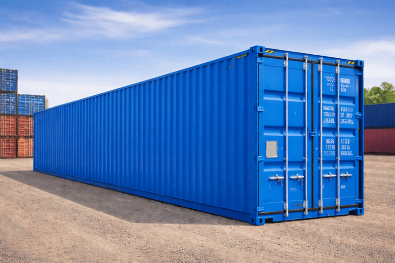 PORT DIRECT* 40HC-U 40ft high cube container designed for high-volume loads, measuring 12,192 × 2,438 × 2,896 mm (L×W×H).