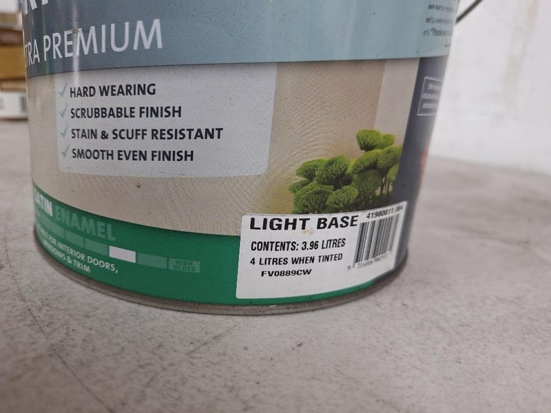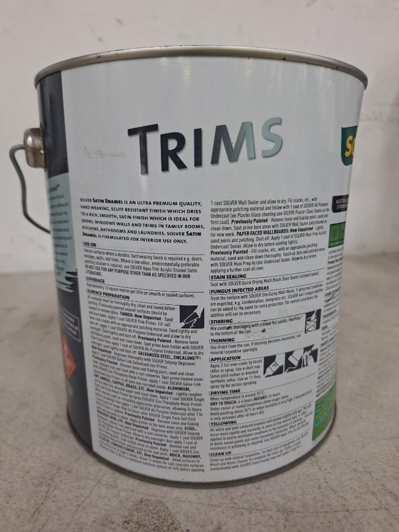Paint, Solver, Trims Ultra Premium, Interior, Satin Enamel, Light Base, 4L Tin BID PER LITRE MUST TAKE 4 LITRES