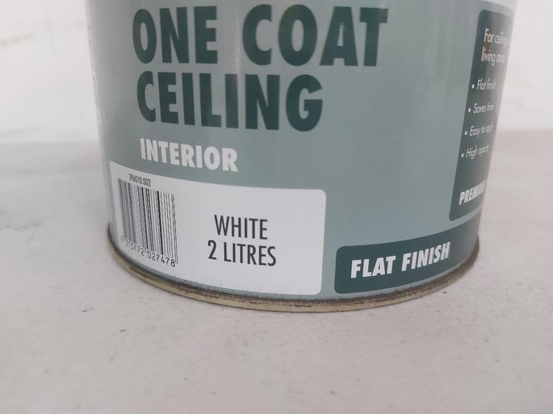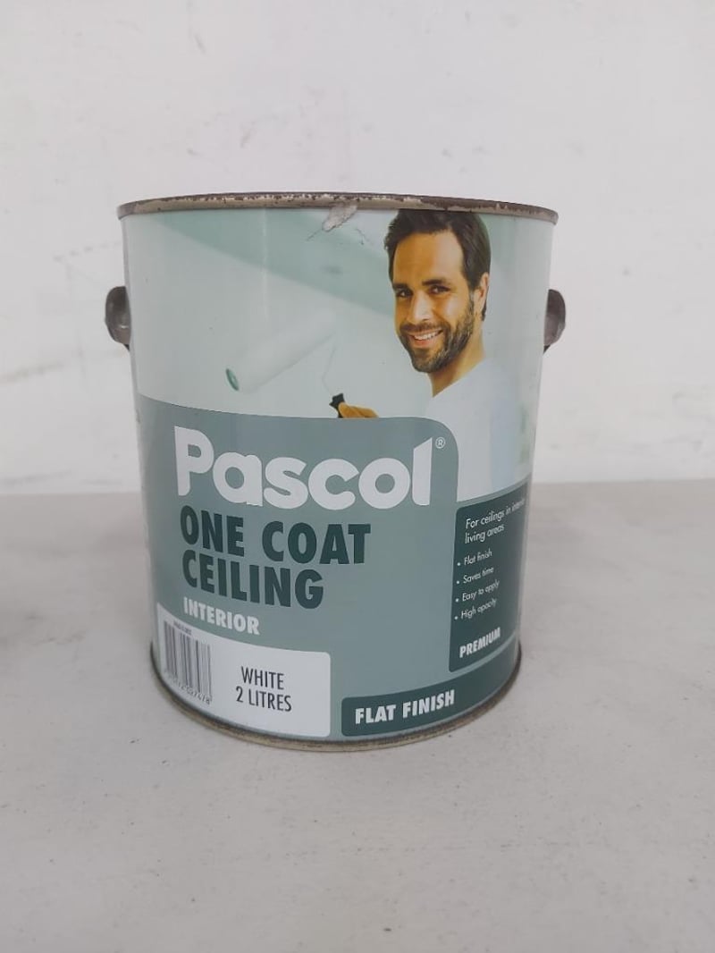 Paint, Pascol, One Coat Ceiling Interior, White Flat Finish, 2L tinBID PER LITRE, MUST TAKE 4 LITRES