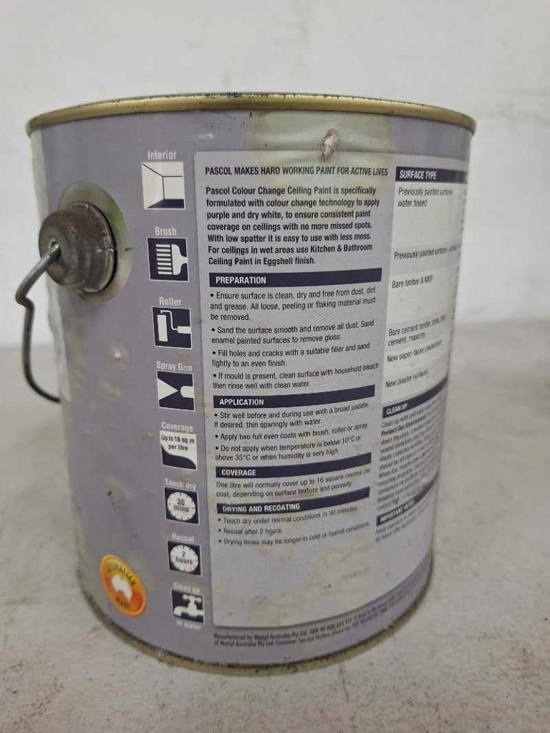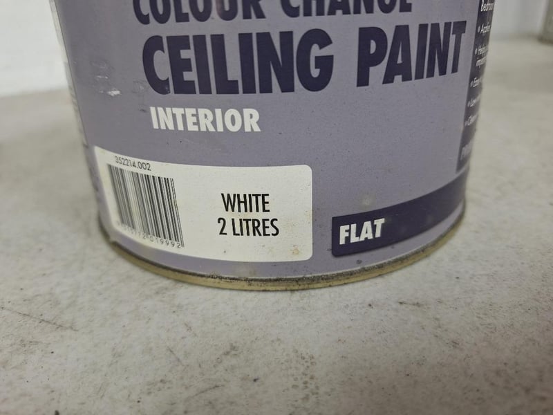 Paint, Pascal, Colour Change Ceiling Paint, Interior, Flat, White 2L TinBID PER EACH, BID MUST TAKE 4 LITRES