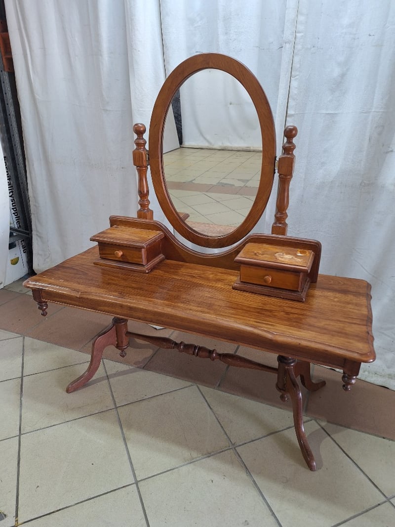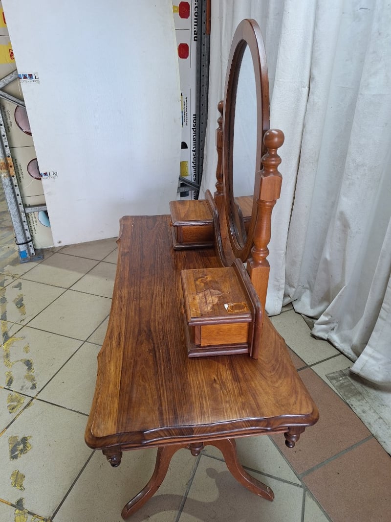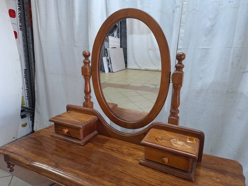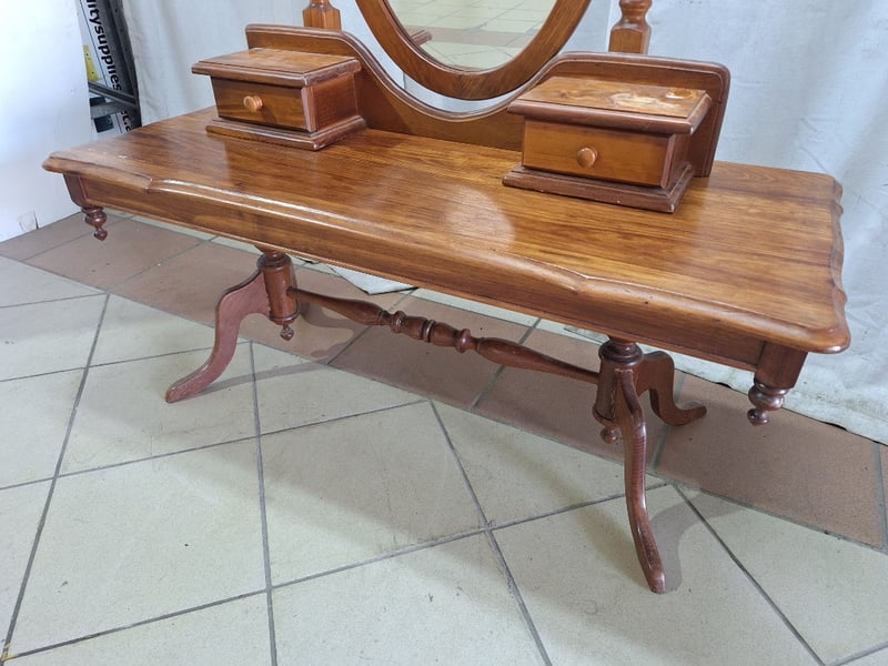 Dressing Table With 2 Drawers, Timber Style, Brown FinishDimensions H:110cm W:105cm D:45cm