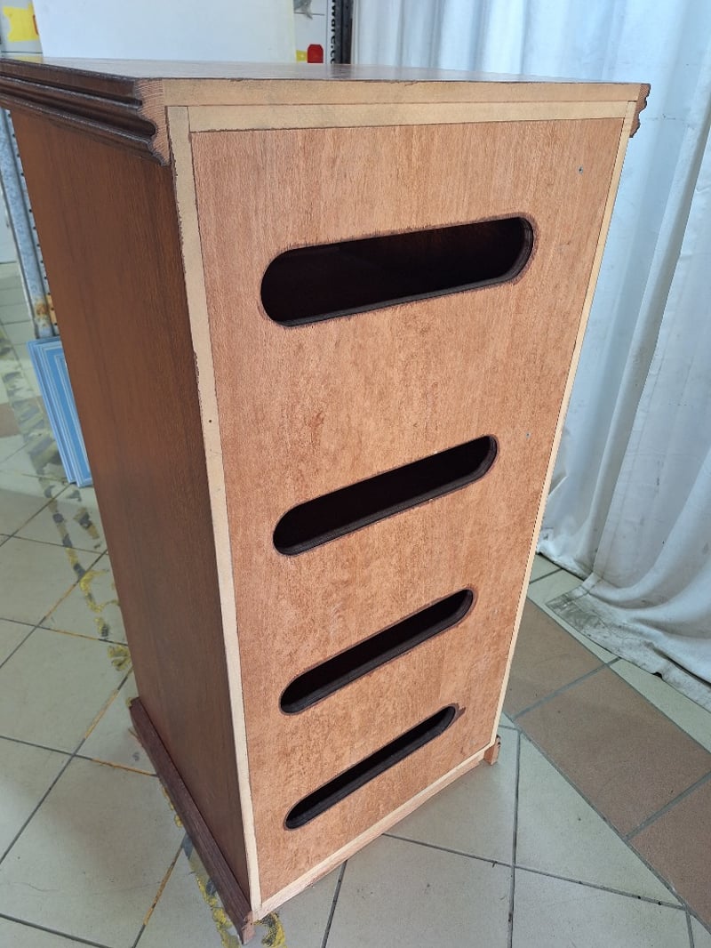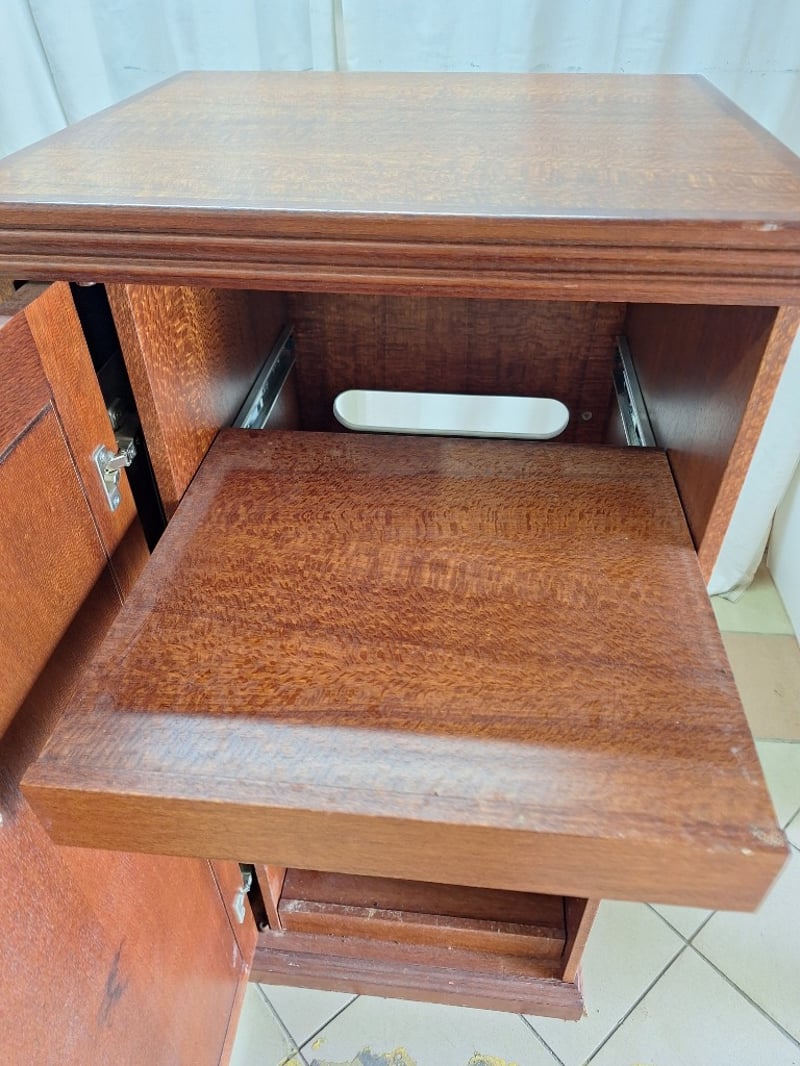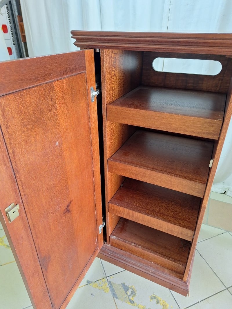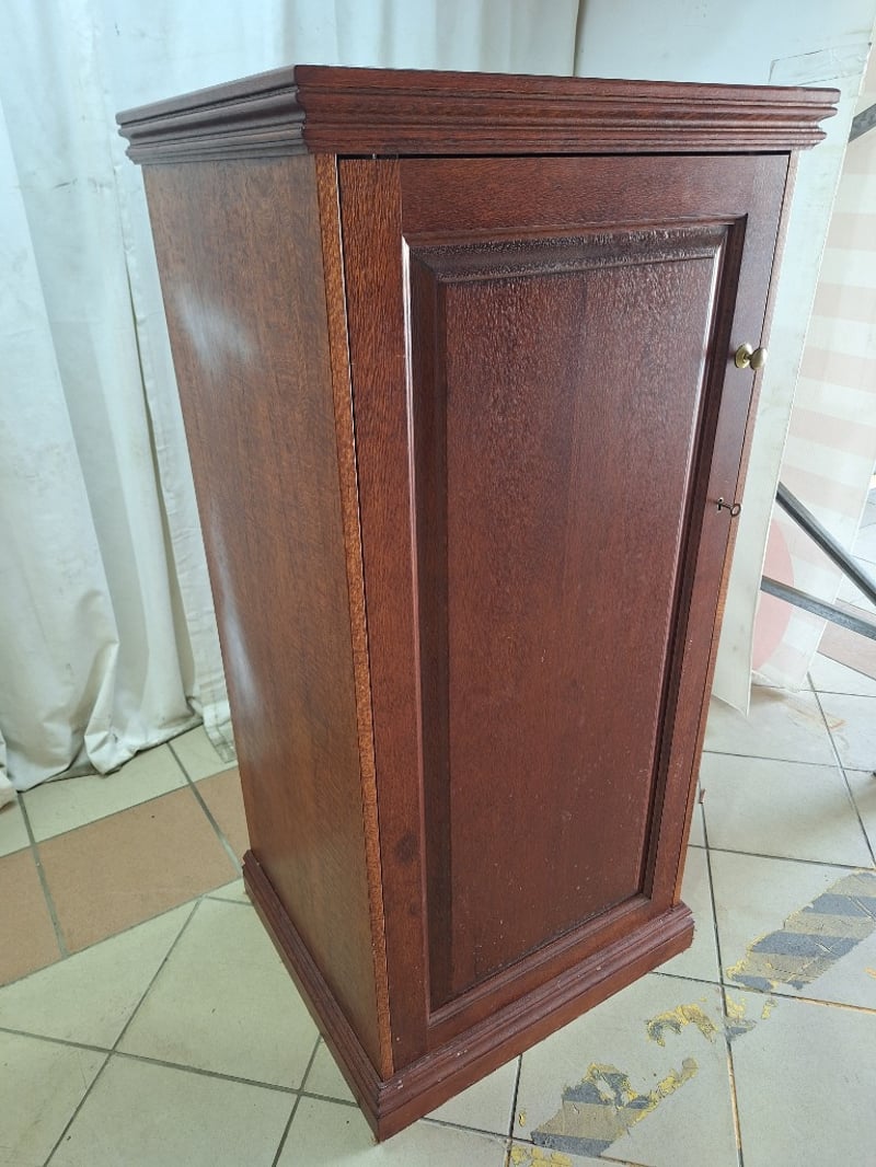 Tall Cabinet With Shelving, Timber Style, Brown Finish, Includes KeyDimensions H:124cm W:59cm D:52cm