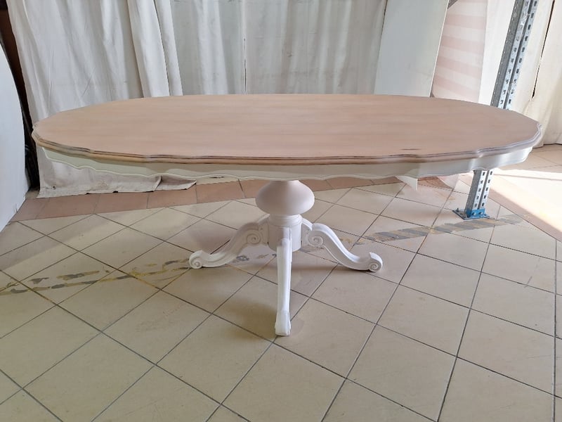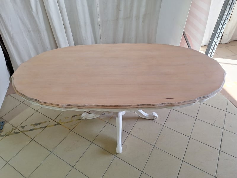 Oval Dining Table, Timber Style, White & Natural FinishDimensions H:73cm W:200cm D:102cm