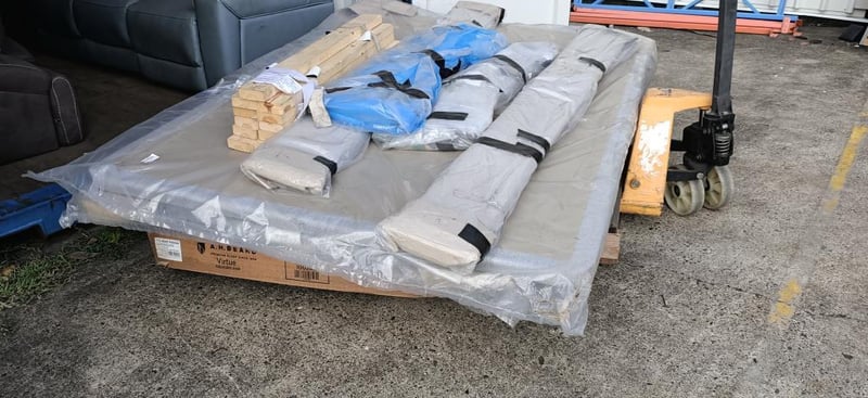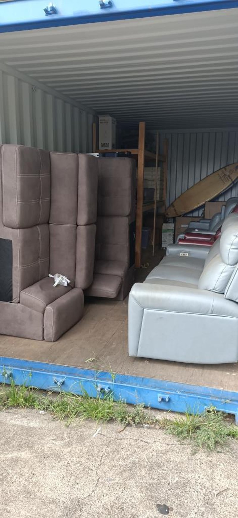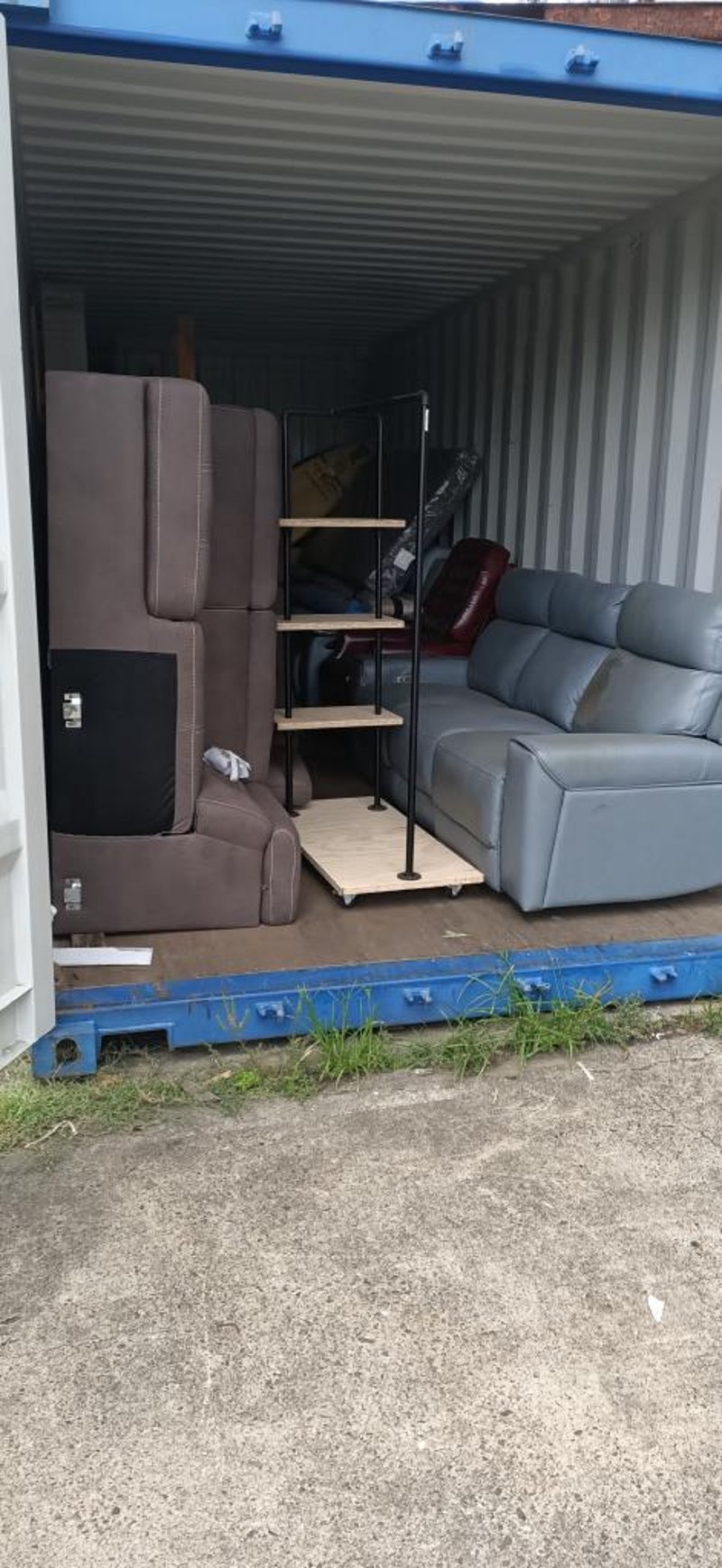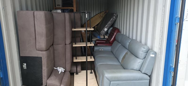 Container Full Of Homewares Including Couches, Bed Frame, Clothes Rack & More SOLD AS LOT NOTE: CONTAINER & SHELVING NOT INCLUDED NOTE: PARTS & COMPONENTS MAY BE MISSING, UNTESTED NOTE: COLLECTION MUST BE WITHIN 48 HOURS OF AUCTION NOTE: PICK UP ONLY