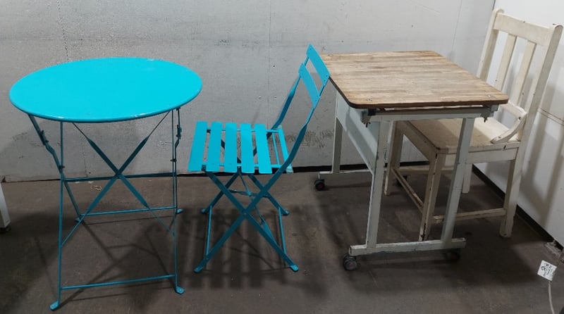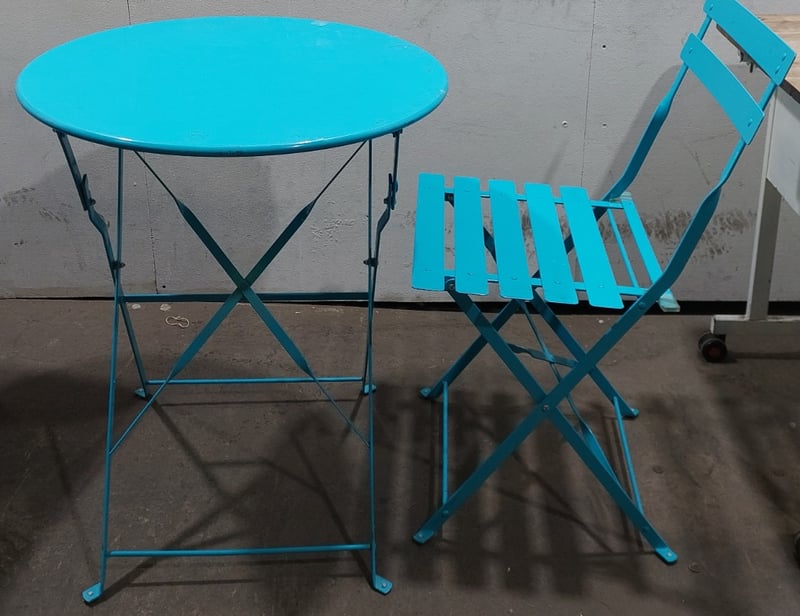 Table and chairs, Blue and White, Timber and Steel