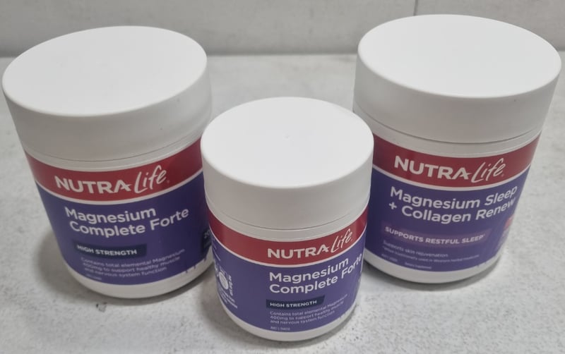 Nutralife Magnesium lot, includes powders and tablets. Sold as lot