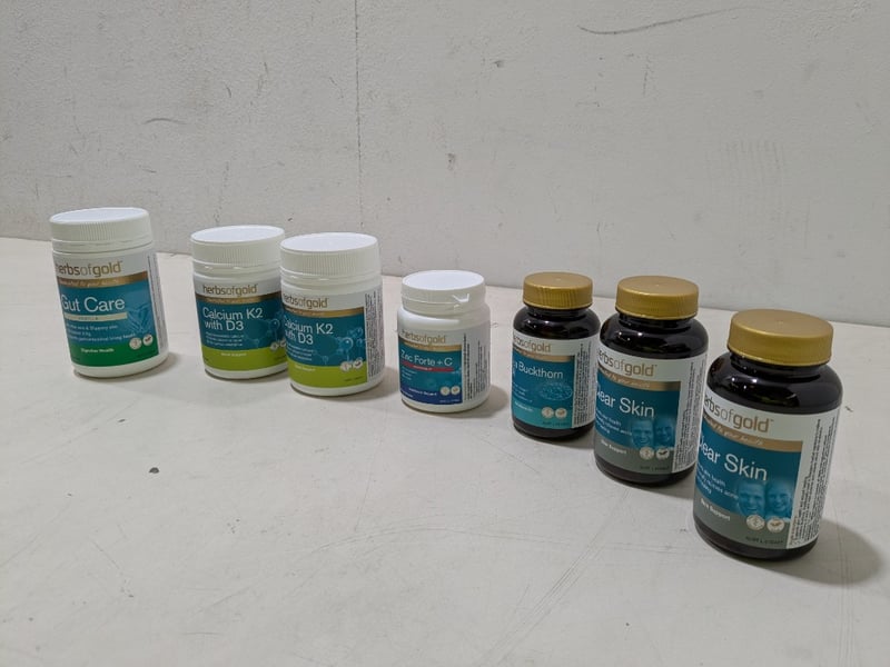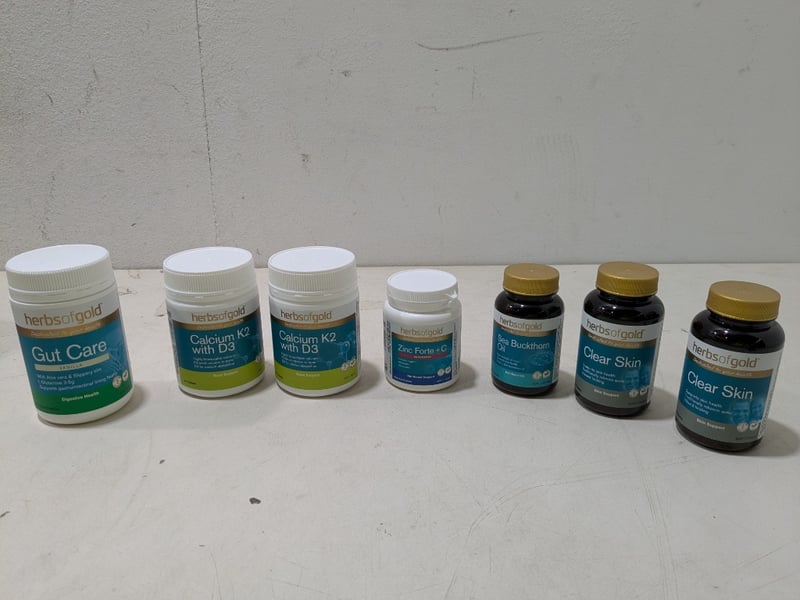 A collection of various health and wellness products, including: Gut care, calcium K2 with D3 and more.. Sold as a lot.
