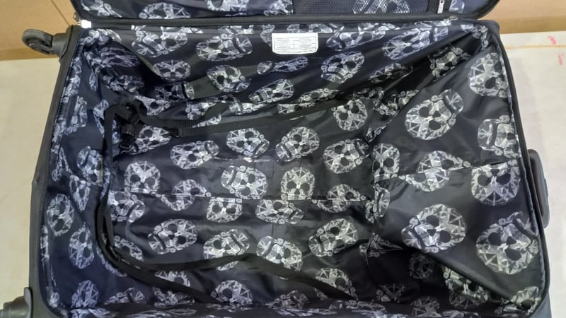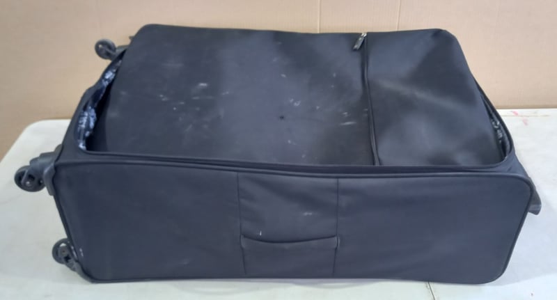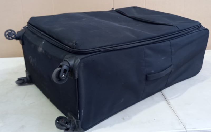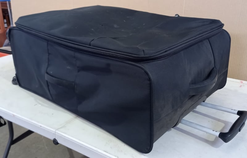 Luggage, black IT Luggage Suitcase with wheels Note: inspection recommended, external damage. Slight rips.