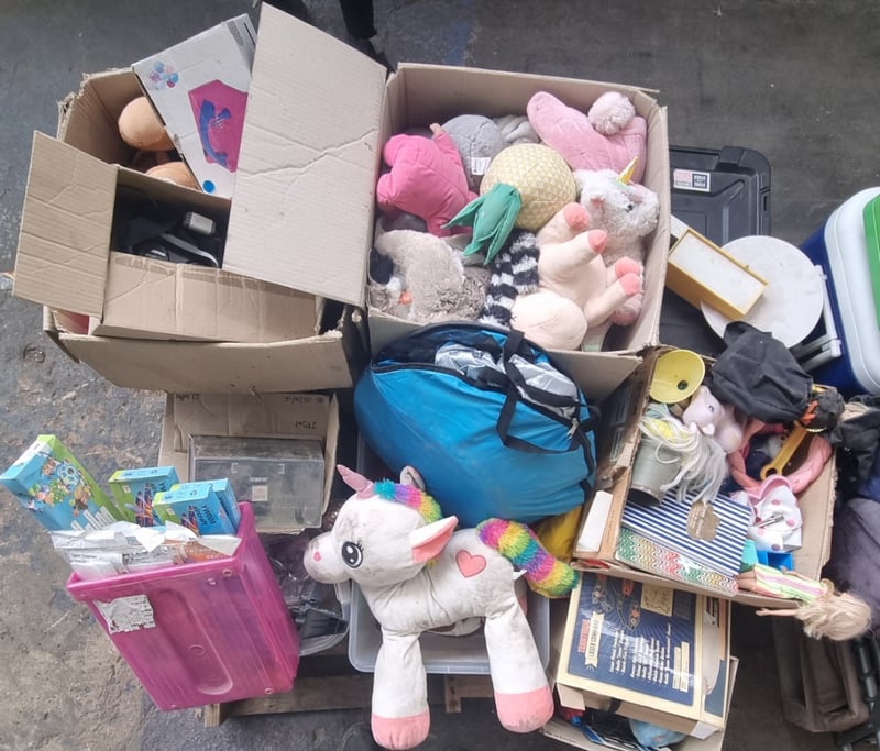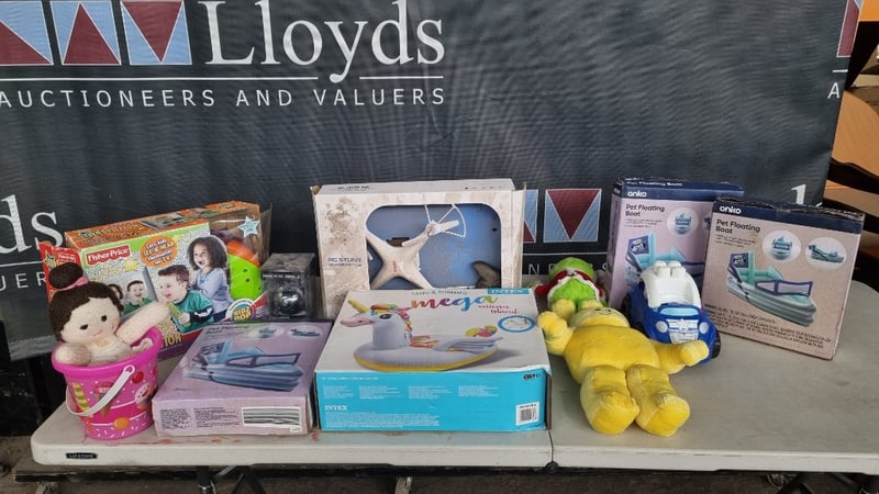 Sports and Leisure. Assorted toys, plushies, inflatables and more. Sold as lot.