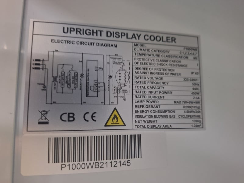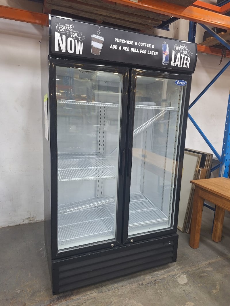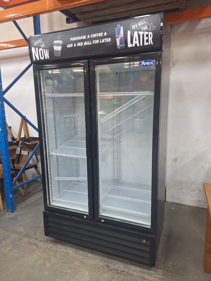 ATOSA Upright Fridge, Model P1000WB, 2-Door, Glass Door, 1 Phase, 10 Amp, Black, Scratches & Dents Dimensions H:201.5cm W:113.5cm D:72cm