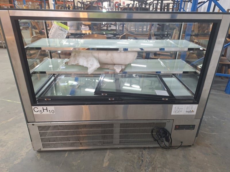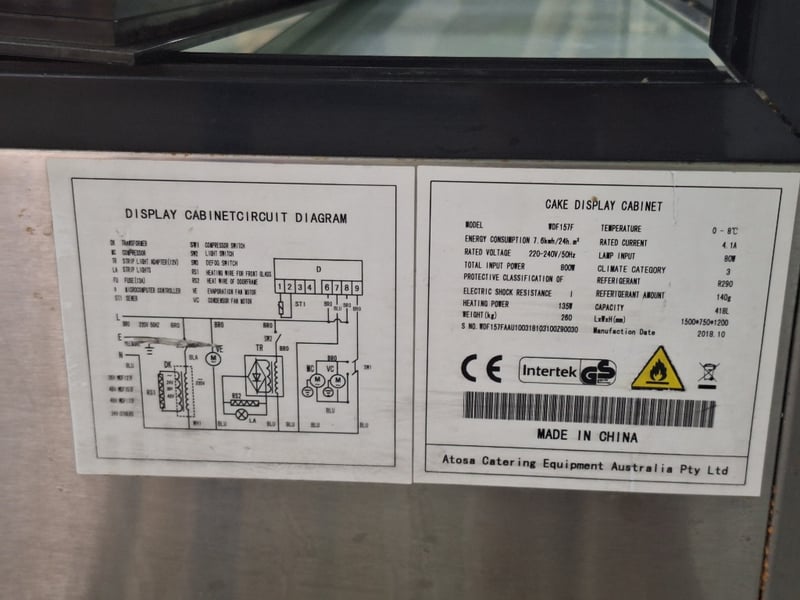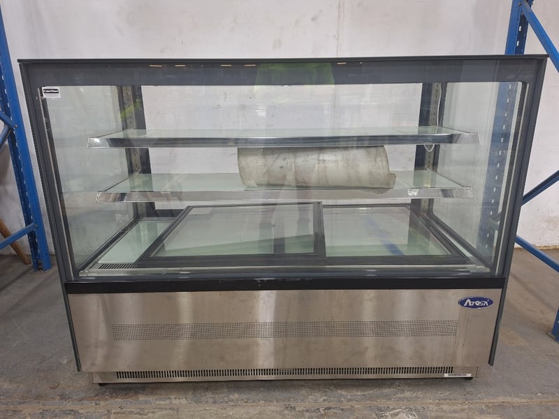 Atosa Cold Food Display, Model WDF157F, 2 Glass Door Refrigerator, 1 Phase, 10 Amp, Stainless Steel, Scratches & DentsDimensions H:121cm W:150cm D:74