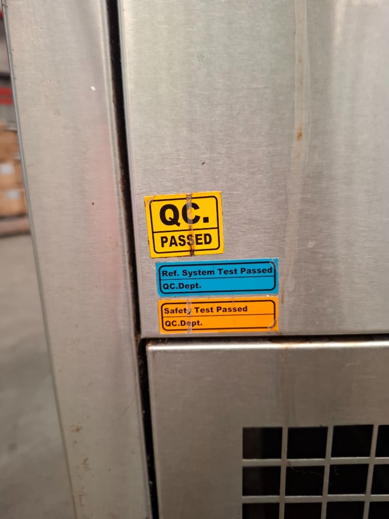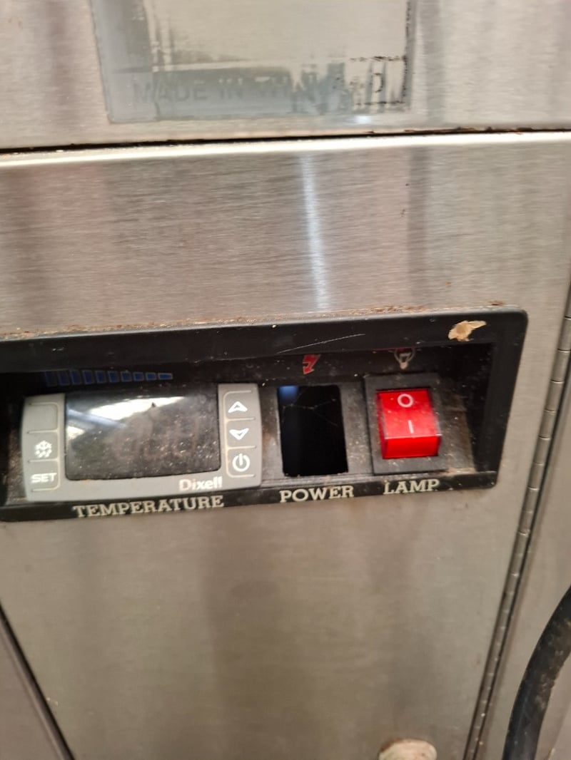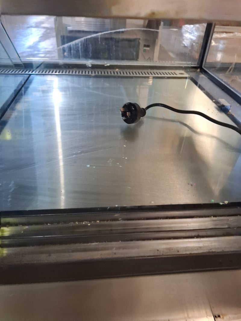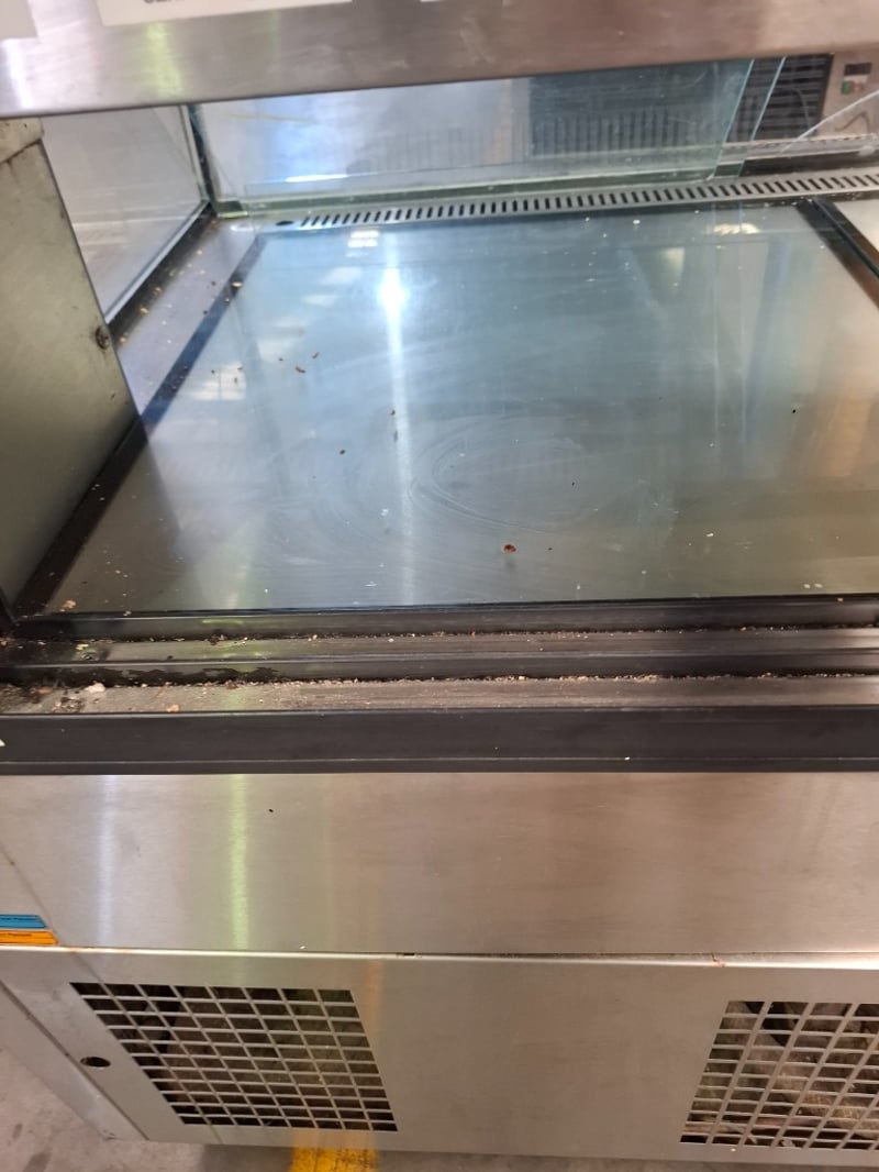 Koldtech display fridge. With light 3 shelves, 2 rear doors for access. Has scratches on metal surfaces and a crack in the front glass.Dimensions H 136cm x W 115cn x D 73cmRequires cleaning.Inspection Recommended