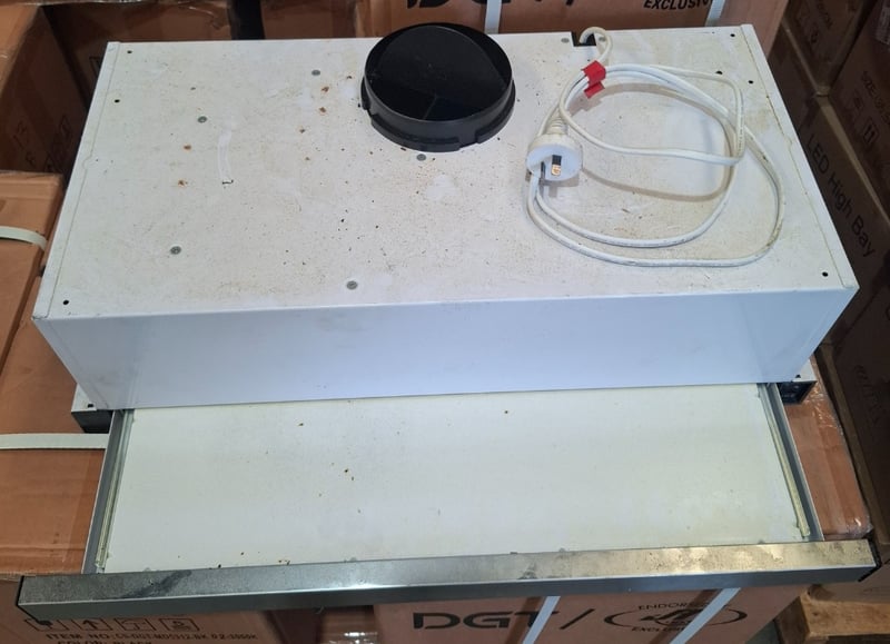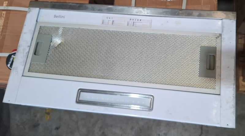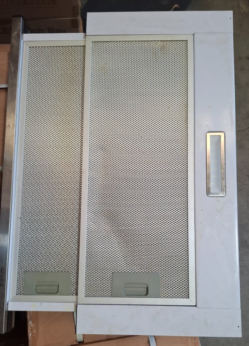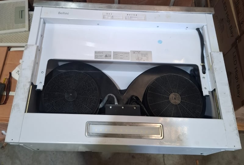 2 x Bellini extractor fans with filters and lights unit is a single fan unit, unit 2 has twin fans Unit 1 Model: BRA62SWP-F Serial Number: AT24083121Dimensions H 21cm x W 60cm x D 30cmUnit 2Model: CRHR6W02-FSerial Number: AT23471911Dimensions H 21cm x W 60cm x D 31cmSome cleaning required Sold as lotInspection Recommended
