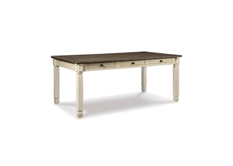 Signature design by Ashley, rectangular dining room table, D647-25.Colour: brown top, white base.