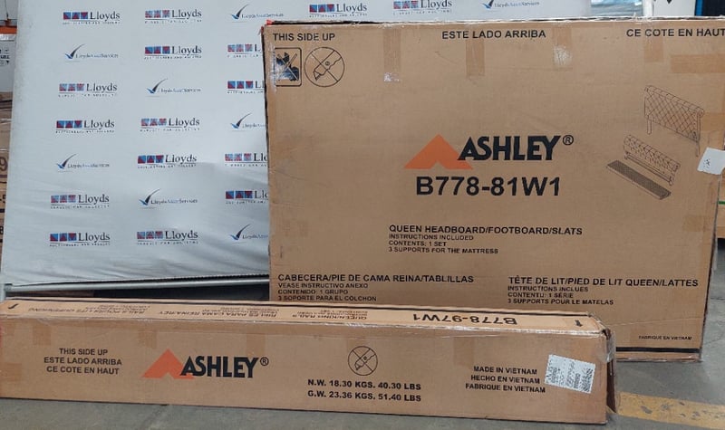 Ashley Queen sized bed frame, includes headboard foot board slats and rails. B778- 97W1, B778-81W1Colour: Grey