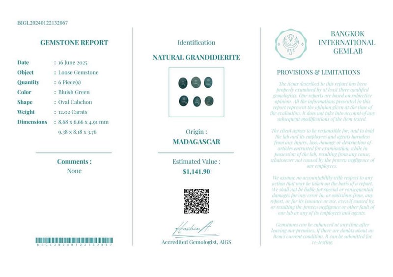 • Verify Report Online At Www.Bangkokinternationalgemlab.Co