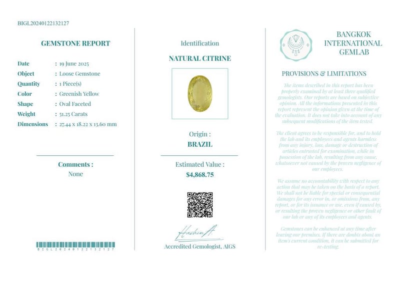 • Verify Report Online At Www.Bangkokinternationalgemlab.Co