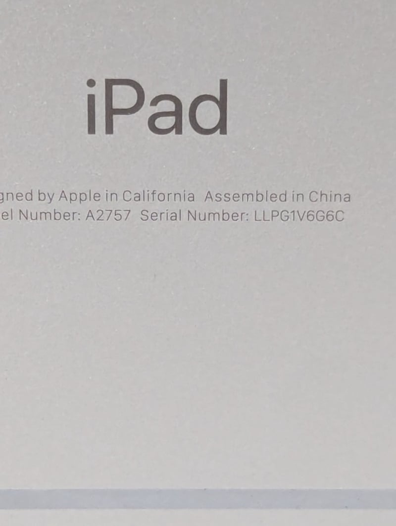 Apple iPad, Model: A2757, Serial# LLPG1V6G6C Note: no charger supplied