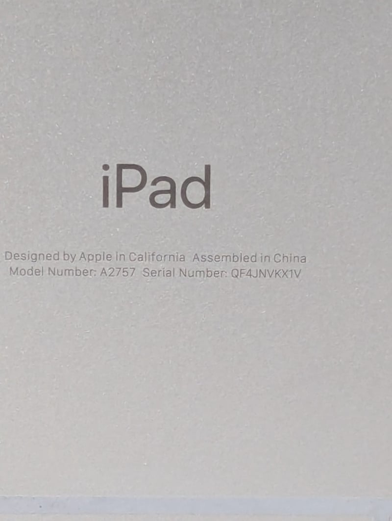 Apple iPad, Model: A2757, Serial# QF4JNVKX1V Note: no charger supplied