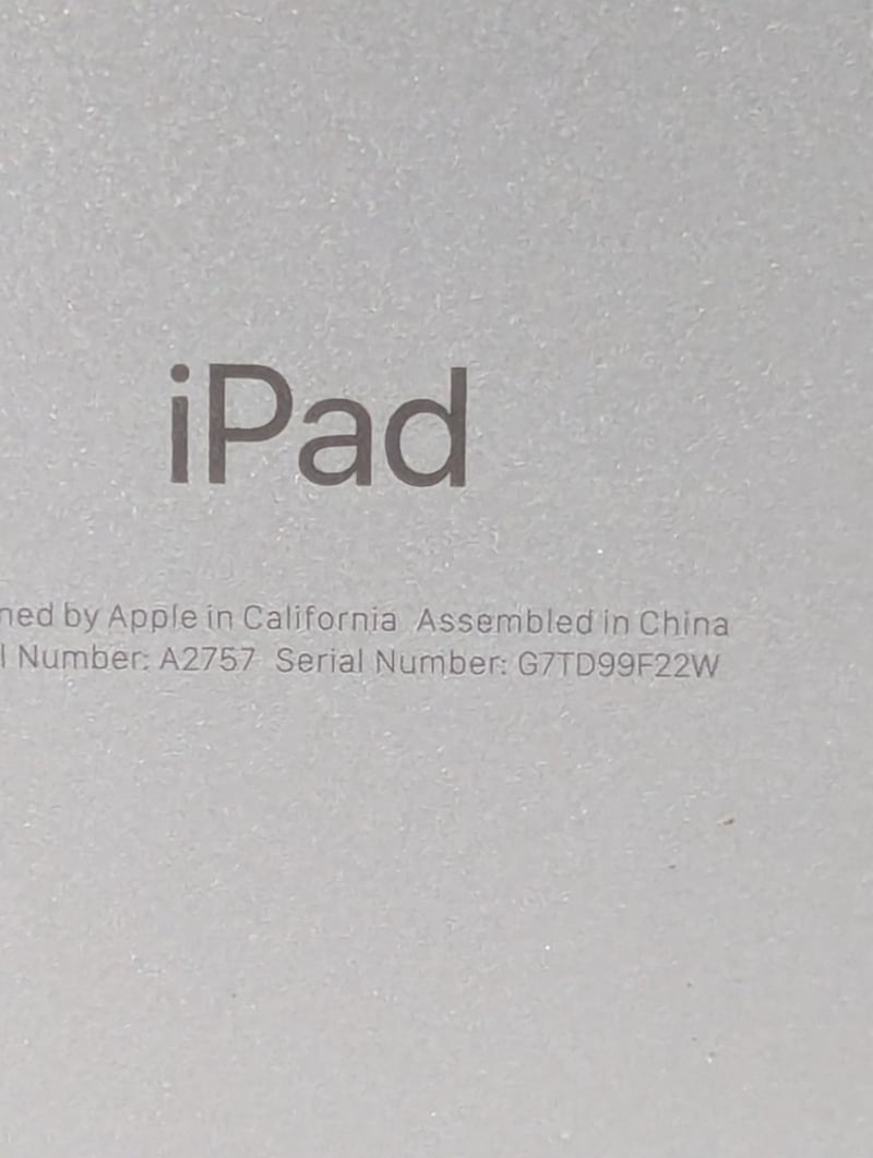 Apple iPad, Model: A2757, Serial# G7TD99F22W Note: no charger supplied