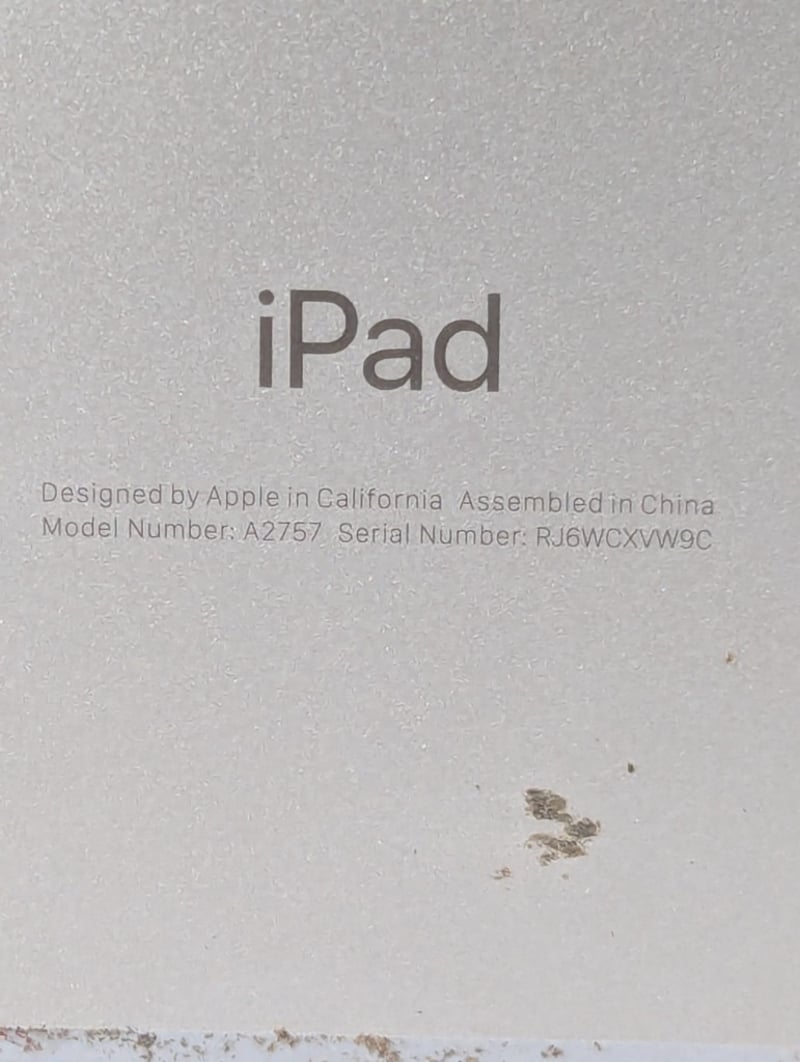 Apple iPad, Model: A2757, Serial# RJ6WCXVW9C Note: no charger supplied